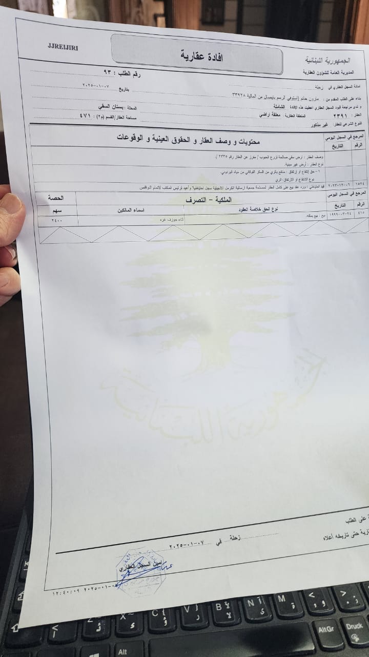 Land for Sale in Maalaka A 1,005 sqm plot enjoying an open view, ideal for residential or investment purposes. Offered at: $125,000 cash payment.