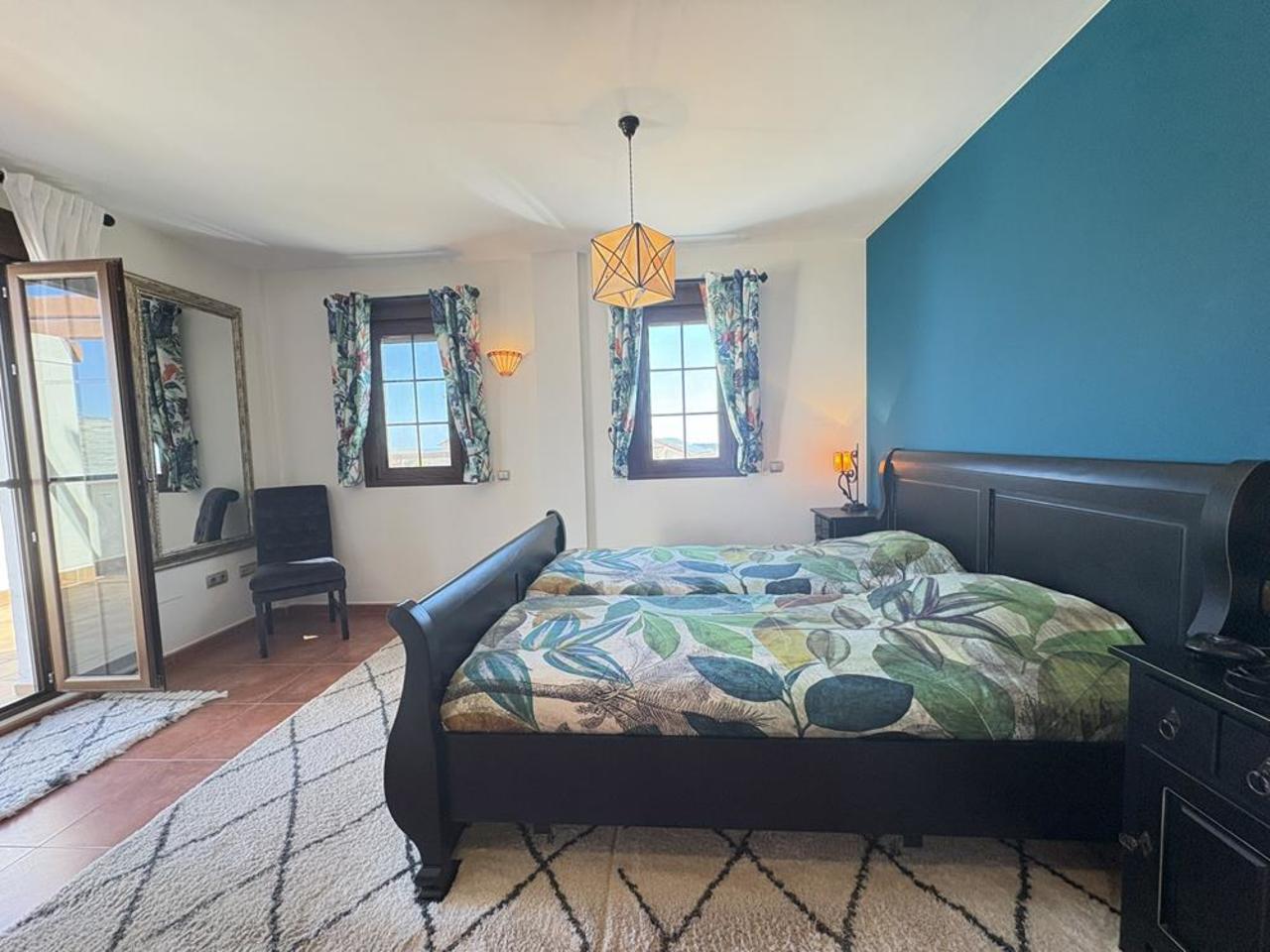 A stunning marble staircase leads to the upper floor, where you’ll find a large master suite with an en-suite bathroom. This light-filled space opens directly onto a spacious sun terrace with panoramic views of the surrounding countryside, perfect for sunbathing, entertaining, or simply enjoying the breathtaking scenery.